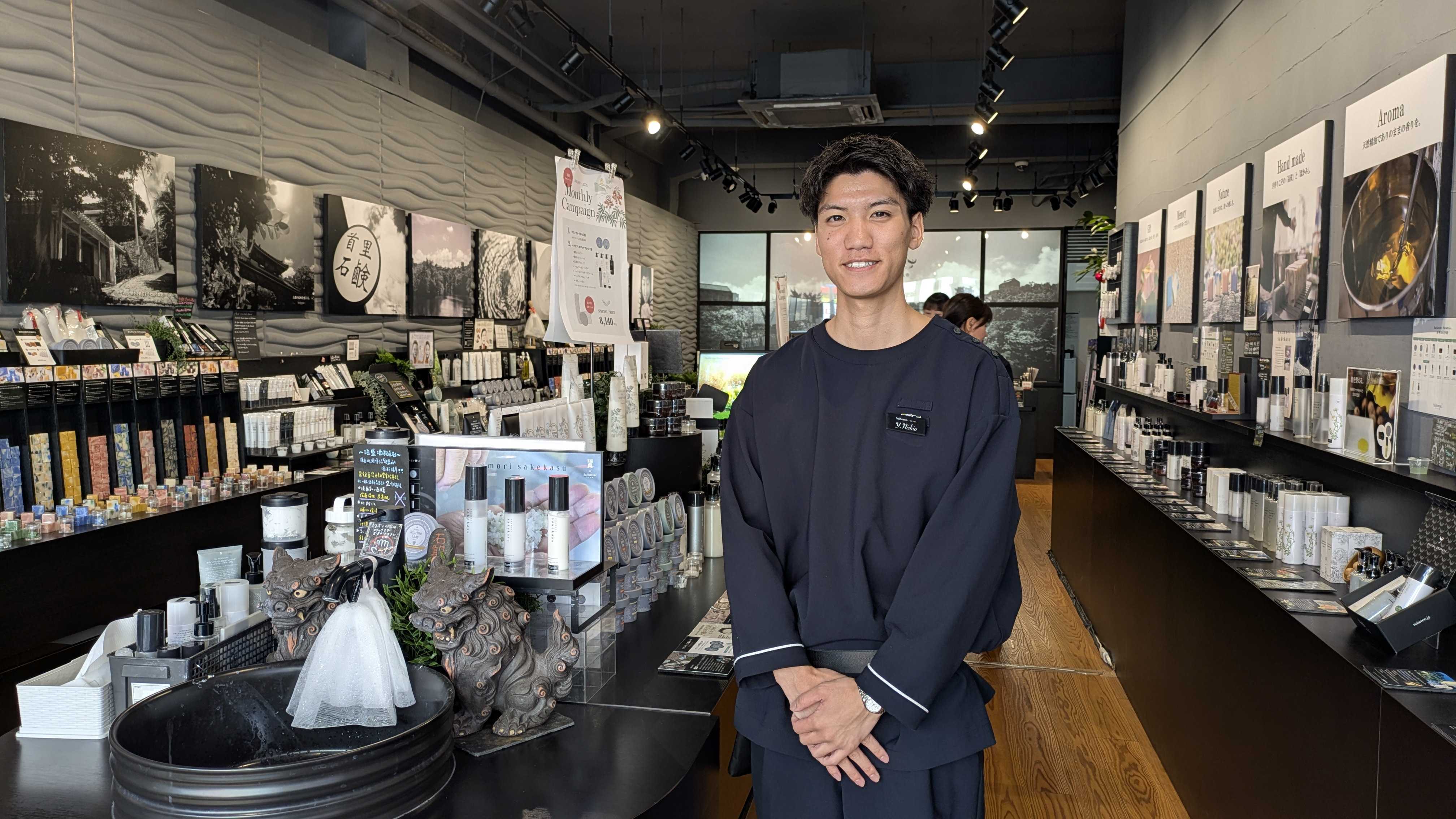 私が所属している松尾店は観光のお客様が多く、首里石鹸の名前だけ知っている方や、初めて知る方も少なくありません。だからこそ、一人ひとりに丁寧に首里石鹸の想いや商品の魅力をお伝えし、「来てよかった」と感じていただけた時に、大きなやりがいを感じています。